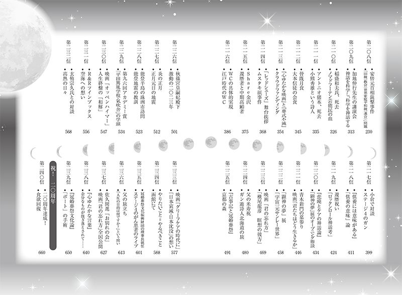 本書の帯には「満月文通240信」「20周年達成!!」「鎌田東二バク転神道ソングライター」「一条真也 儀礼文化イノベーター」「生命・使命・天命の交信!」「渾身の書評(7万字)『日本人の死生観Ⅰ/Ⅱ』全文掲載」と書かれています。