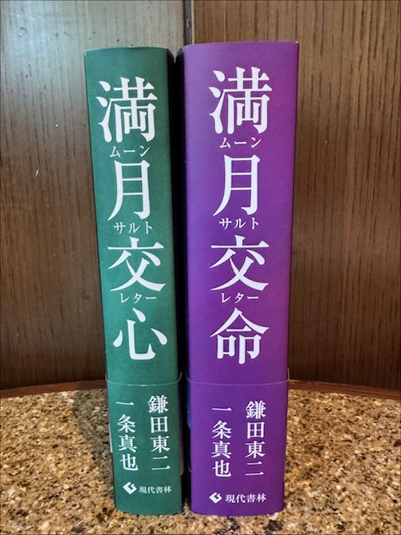 『満月交感 ムーンサルトレター(上)』『満月交感 ムーンサルトレター(下)』『満月交遊 ムーンサルトレター(上)』『満月交遊 ムーンサルトレター(下)』(いずれも水曜社)、『満月交心 ムーンサルトレター』(現代書林)の続編で、満月シリーズ6冊目にして完結編となります。前作同様に上下2巻に分けずに1巻としました。ですから、すごく分厚いです。なお、『満月交心』の背表紙はグリーンですが、これは鎌田先生のイメージカラーでした。そして『満月交命』の背表紙はわがイメージカラーであるパープルとなっています。