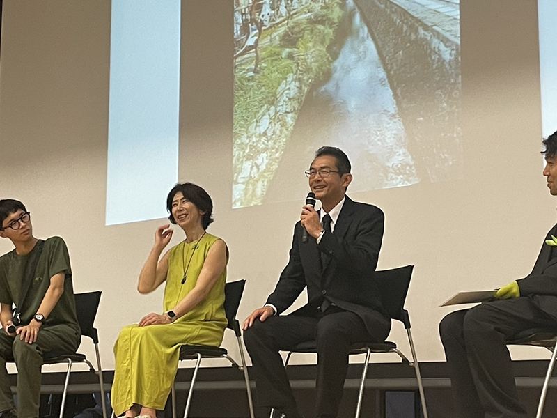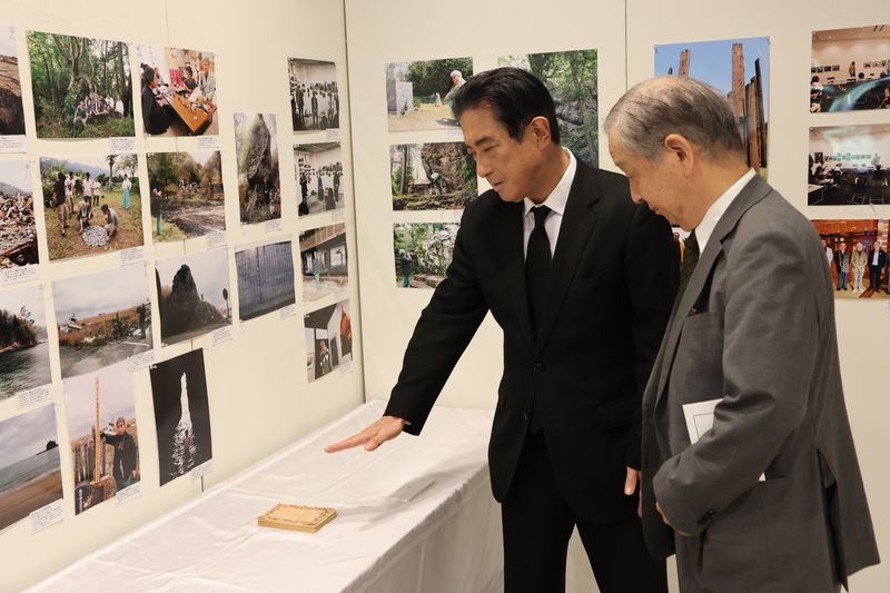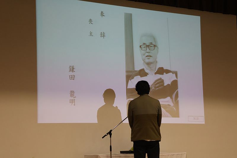 その後、14時20分から第二部「鎌田東二が未来に託したもの」が行われ、「北上の歌」の画像が流され、「能登学について」(能登学メンバー)、「災害学について」(災害学メンバー)の発表があり、わが社の大谷賢博部長も出演しました。その他、佐野文憲氏(一松造園代表)による「実践の場としての鎌田道場ーーj継承と出発」、平田龍胤氏(新宿平田神社宮司)による「新宿平田神社境内『鎌田天河大弁財天社』設立について」、今村達弥新センター長による「災害学・再学社会支援者研修センターのこれから」、大野邦久氏(災害学・災害社会支援者研修センター事務局長)、三澤史明氏(九州大学病院・心療内科医師)、須田郡司氏(巨石ハンター・写真家)による「同行三人旅~freedom」の発表があり、最後に「鎌田東二未来へのメッセージ」の動画が流されました。
