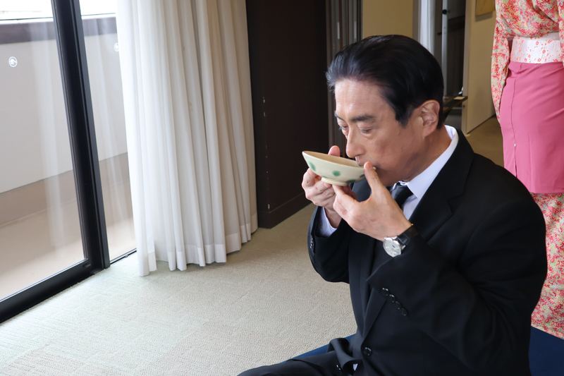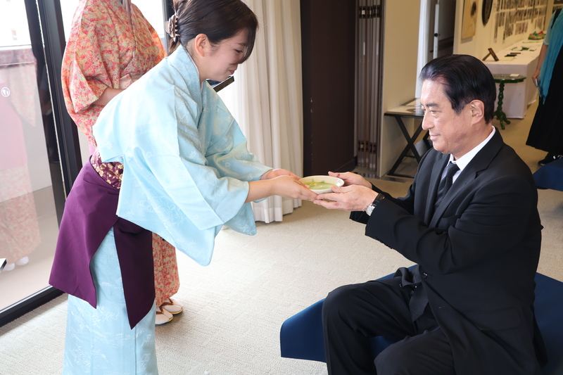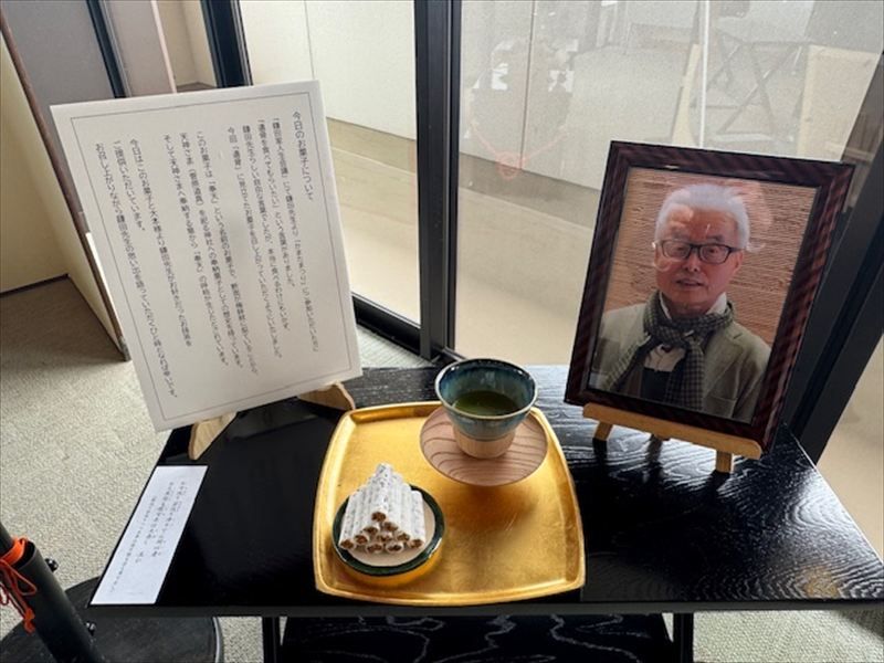 わたしへの形見に遺していただいた出口王仁三郎作の陶器である2点の「耀盌(ようわん)」もありました。大本さんのご好意で抹茶のしつらいもあり、わたしも一服頂戴しました。Tonyさんの遺骨が入っている(?)というお菓子も置かれていました。わたしは食べませんでしたけど・・・・・・。