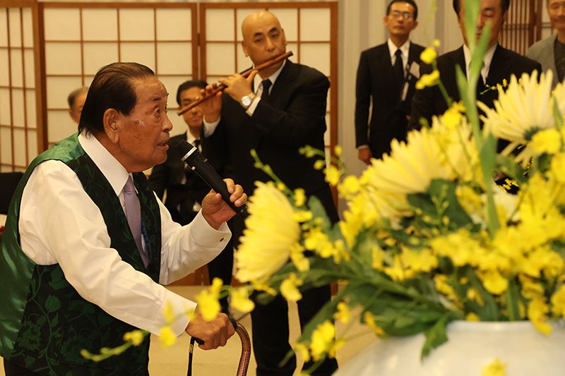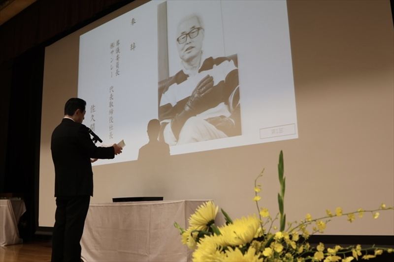 最初に、「鎌田先生とわたしはカラオケが共通の趣味で、数えきれないほど御一緒しました。先生は、わたしが歌う北島三郎の『祭り』がお好きで、『かまた祭り』のラストでぜひ歌ってほしいと言われていました。諸先輩方おられる中で誠に不遜ではございますが、故人の希望であり、ご容赦ください!」と言いました。