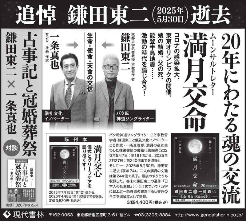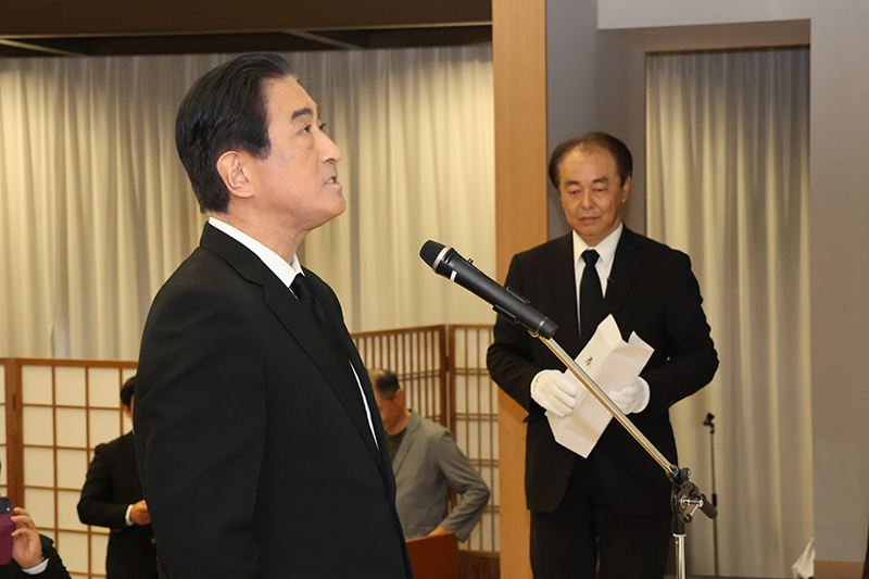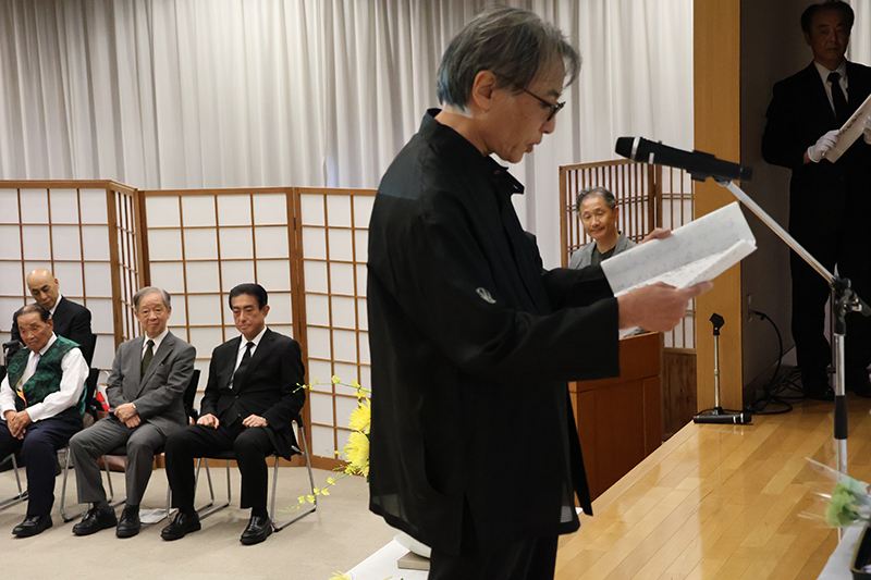 「本日、わたしたちは京都大学名誉教授であり、宗教哲学者であり、そして、わが魂の義兄弟であった鎌田東二先生を偲び、感謝を捧げるために、ここに集いました。鎌田先生は、生涯を通じて『明るい世直し』という志を掲げ、思想と行動の両面から日本社会に多大な影響を与え続けた、偉大な実践思想家でした。病を得てもなお、その情熱と行動力は少しも衰えることなく、最期の瞬間までわたしたちの前を歩き、未来を照らし続けて下さいました。先生、あなたは、まさに『光』そのものでした。それも人々に寄り添い、慈愛に満ちた『月の光』でした」