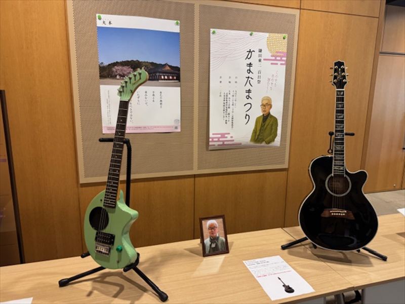 会場の「みろく会館」に着くと、Tonyさん愛用のギターをはじめ、多くの展示品が飾られていました。なつかしい写真や膨大な著作も展示されていました。わたしとの共著も展示されており、胸が熱くなりました。