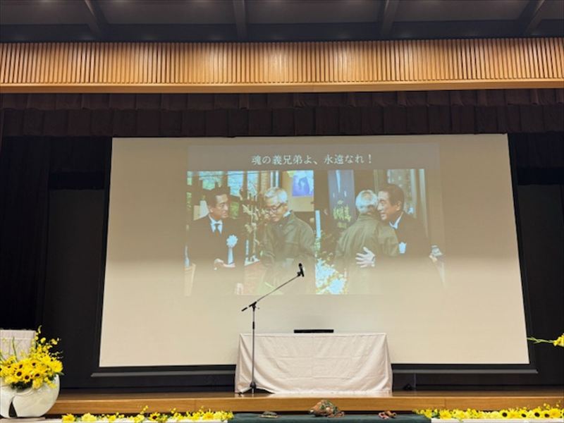 そして、わたしは「いつか、わたしもそちらに行ったとき、どうか笑顔で迎えてください。そしてこう言ってほしいのです。『魂の弟よ、本当によく頑張ったな』と。今日、ここに集ったわたしたちの想い、祈り、拍手、涙、そして笑顔。そのすべてが、きっと鎌田先生のもとへ届いています。先生の言葉、歌、祈りは、宗教の壁も、時代の隔たりも超え、これからも、わたしたちの心の奥に、生き続けていくでしょう。そして先生の偉大な足跡と志を胸に刻み、未来へとつないでいくことを、ここにお誓い申し上げます。鎌田先生、本当にお疲れ様でした。そして、ありがとうございました」と述べ、「最後にもう一度だけ言わせて下さい。鎌田先生、お見事な人生でございました!」と述べたのでした。